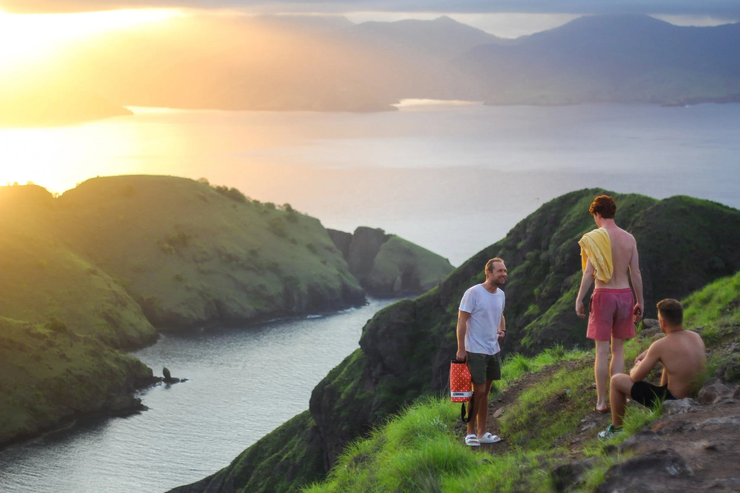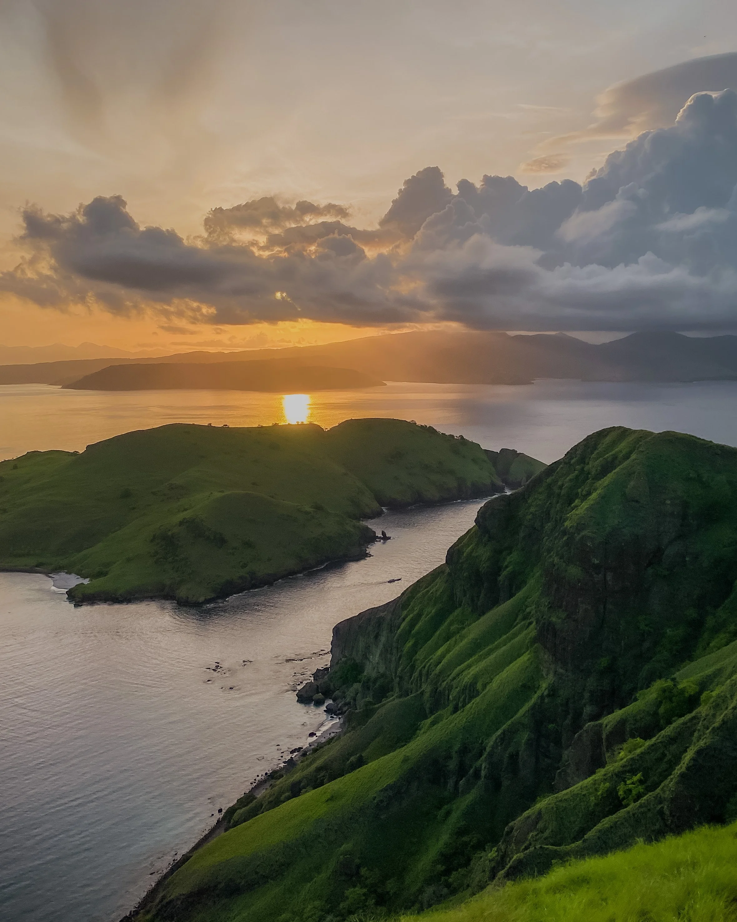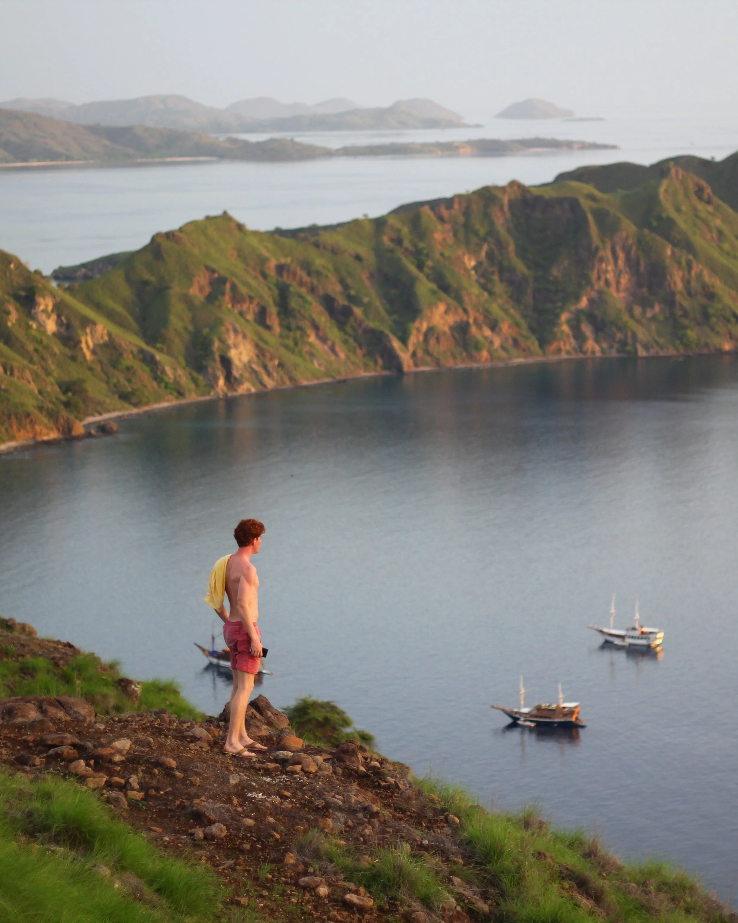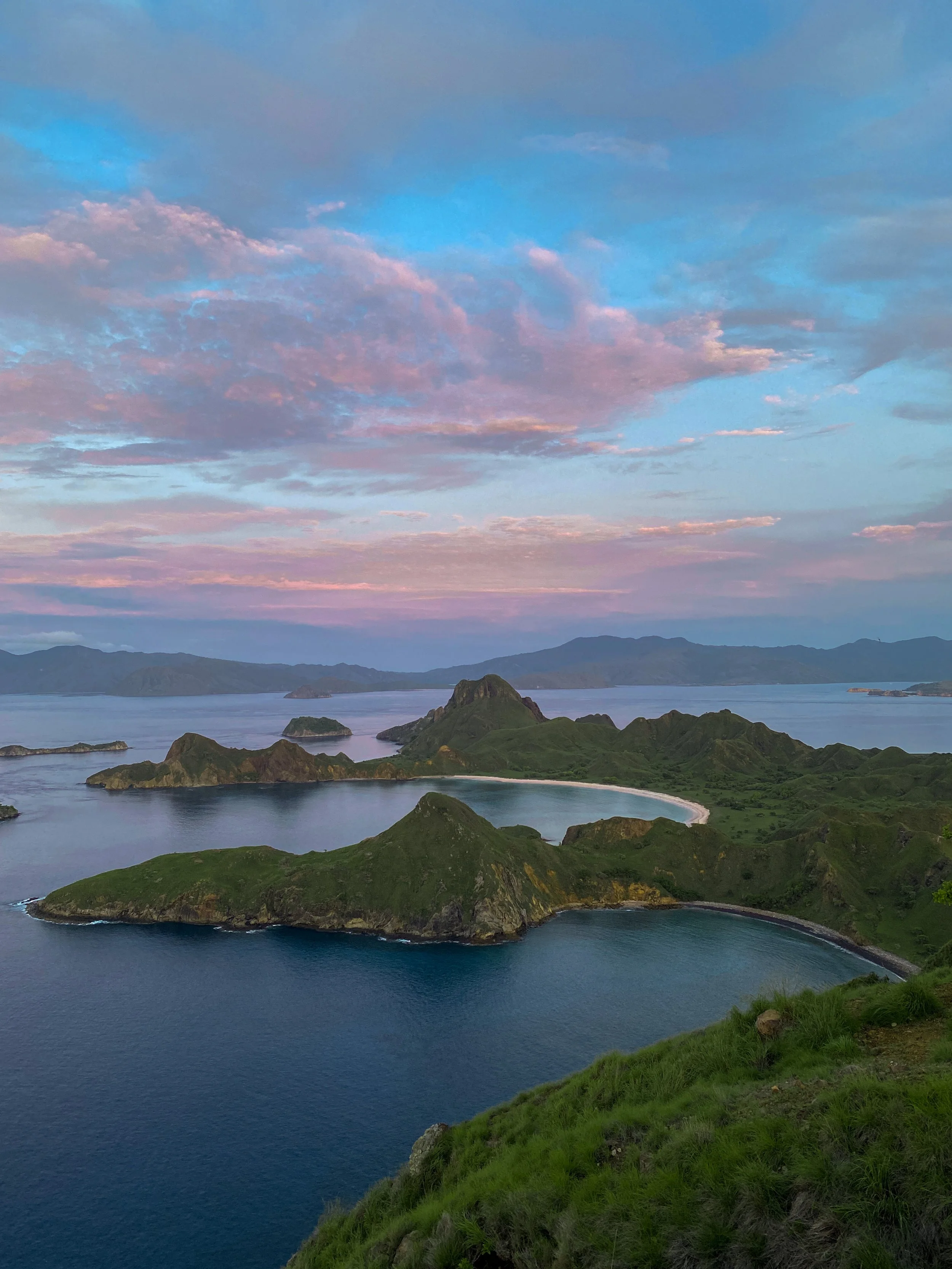 Padar is located between Komodo and Rinca, often dubbed as the best place to hike in the area and currently on trend with visitors to the region due to its unique view of tri-coloured beaches from the top of the hill. The main point of attraction is hiking to the viewpoint from which you could see the breathtaking view of the whole island. From the top, the rugged brown peaks of the dry savannah set as a contrasting background for the natural blends of the tri-coloured beaches of gray, white, and pink before flowing seamlessly into the turquoise ocean.