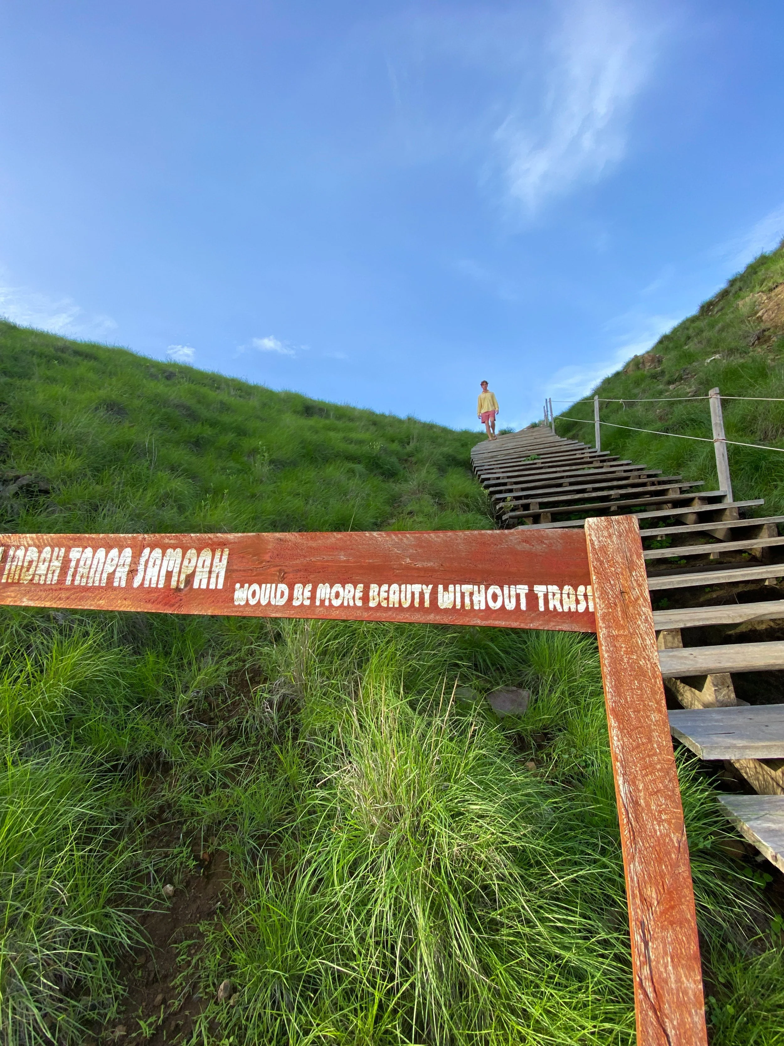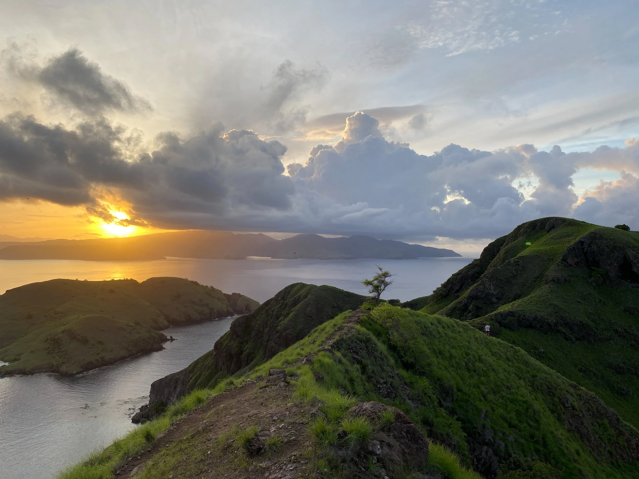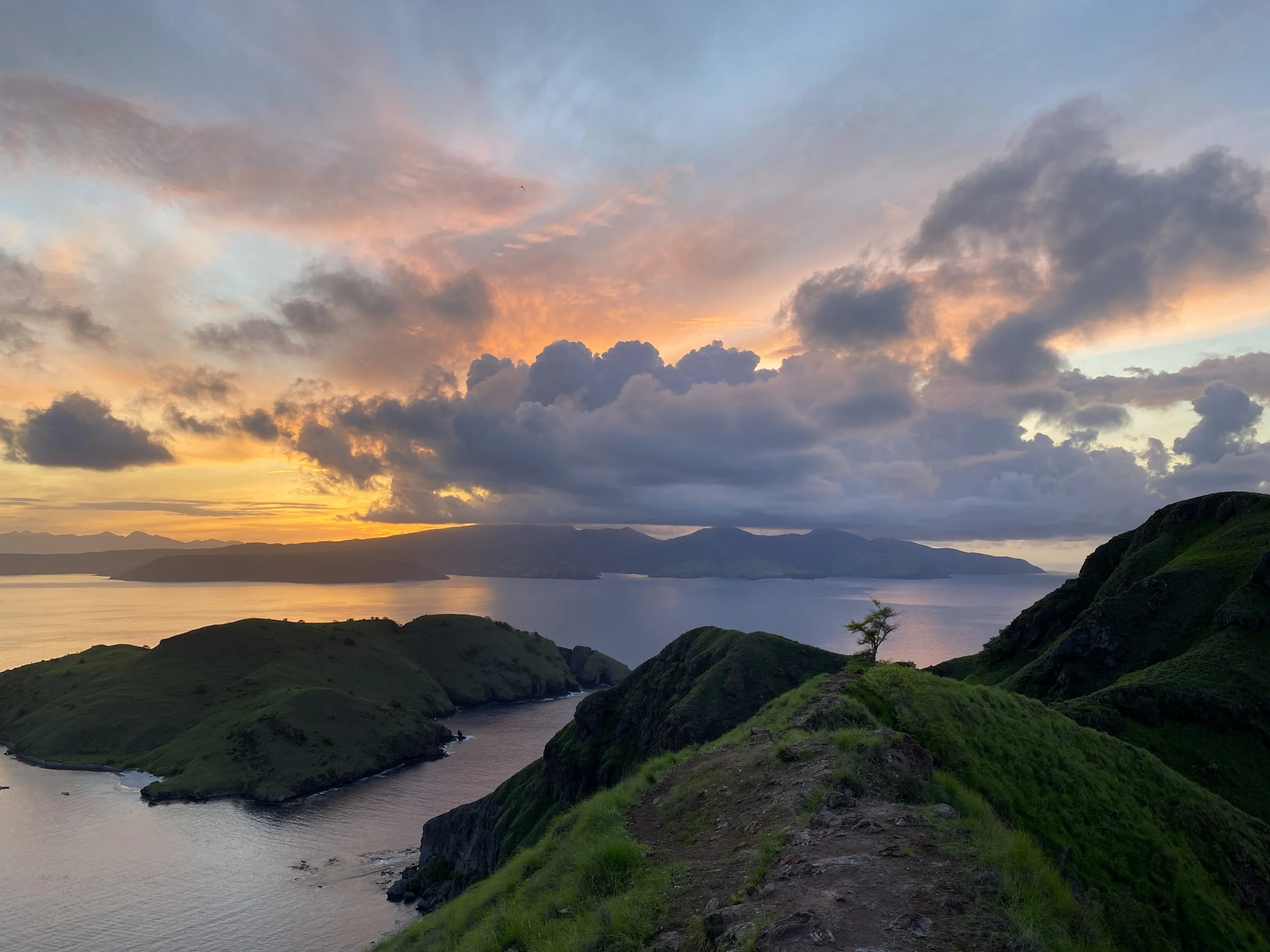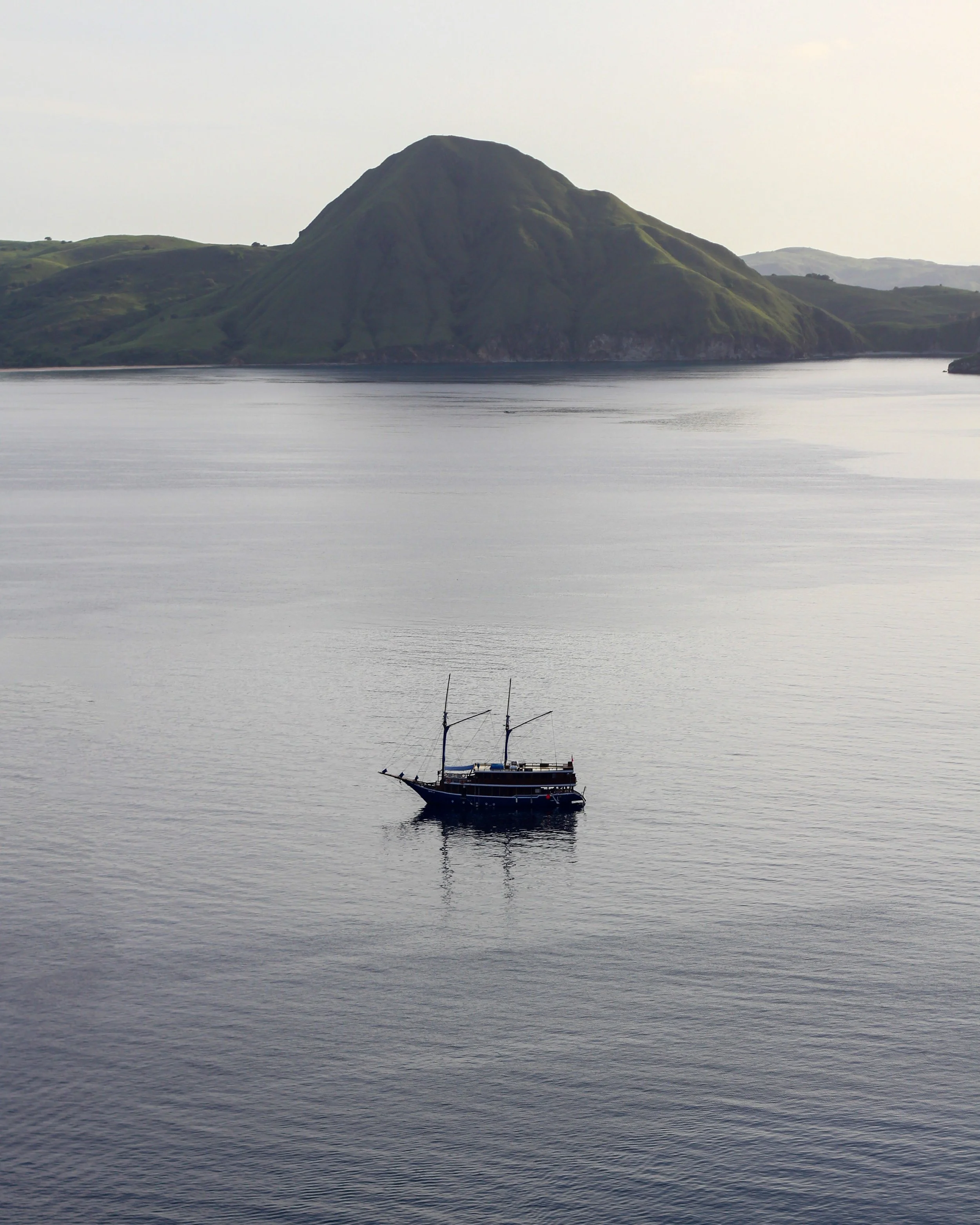 Padar is located between Komodo and Rinca, often dubbed as the best place to hike in the area and currently on trend with visitors to the region due to its unique view of tri-coloured beaches from the top of the hill. The main point of attraction is hiking to the viewpoint from which you could see the breathtaking view of the whole island. From the top, the rugged brown peaks of the dry savannah set as a contrasting background for the natural blends of the tri-coloured beaches of gray, white, and pink before flowing seamlessly into the turquoise ocean.